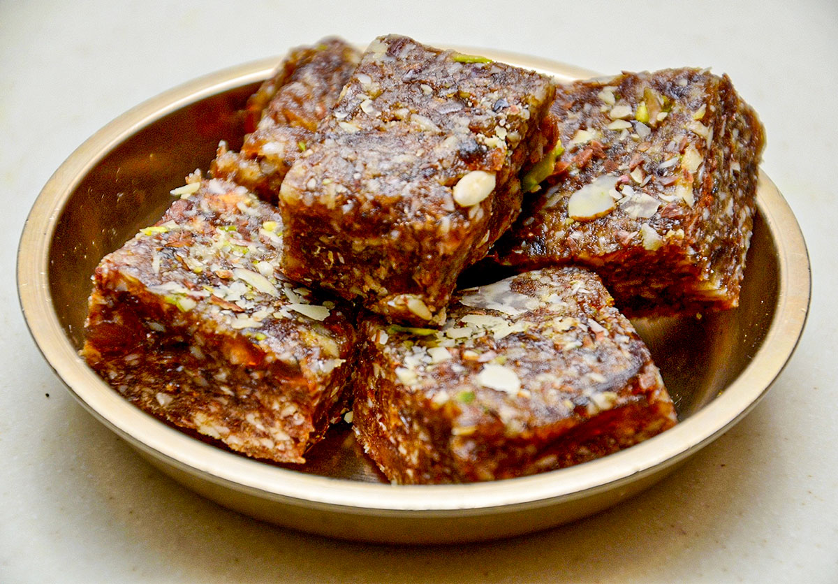 Prepared using naturally sweet dates combined with premium dry fruits, this barfi delivers rich flavor without refined sugar. Its chewy texture and natural sweetness make it a satisfying traditional sweet.